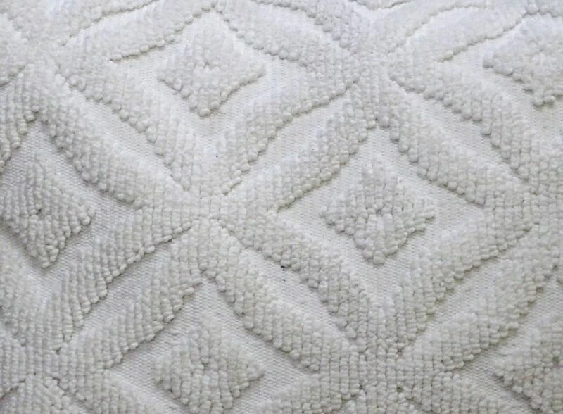 18×18 in white indoor outdoor geo ogee pillow. 100% Polyester. Includes: 1 Decorative Pillow with high quality insert. Back of the pillow has solid color with no pattern. Spot Clean only. Designed in USA. Zipper Closure for easy removal of insert. Outdoor and indoor accent pillow