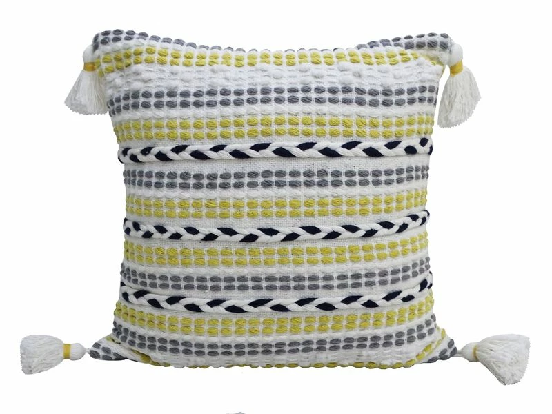 20 inhces X 20 inches handwoven pillow with braidsFront-90% Cotton, 10% Polyester