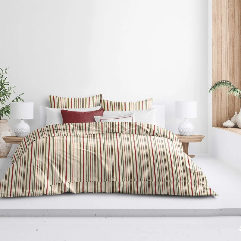 - Fabric Content: 51% Cotton 49% Polyester, reversing to Ivory 100% Cotton Percale.