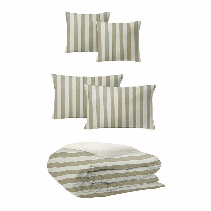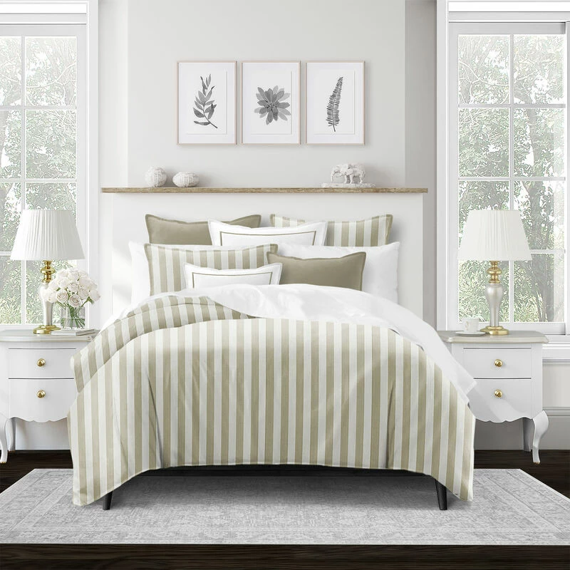 - Coverlet and Shams are finished with a half-inch trim detail.