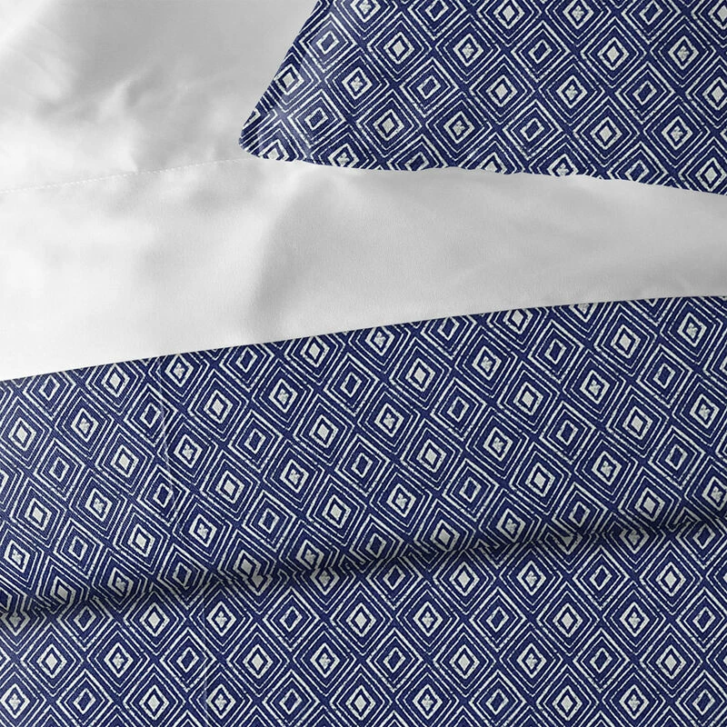 - Fabric Content: 73% Polyester 27% Cotton, reversing to white 100% Cotton Percale.
