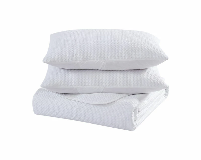 The Nesting Company Aspen 3 Piece Quilt Set is simple and sophisticated. With its Waffle quilting pattern it can give your bedroom a trendy hotel style. Solid colors can also provide a relaxing space – great for winding down after a long day. Made from super soft Microfiber, perfect for year round use. This set is machine washable for easy care.