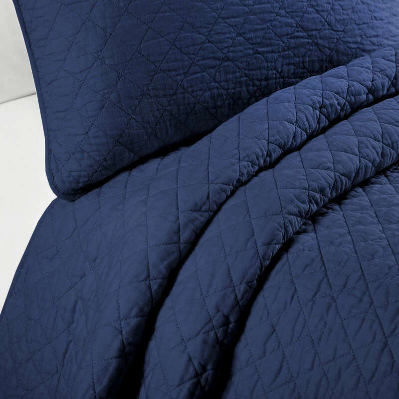 This soft and lovely 3-piece cotton quilt set is perfect for the minimalist. This generously sized quilt set will brighten up any room and any mood. It easily fits well with any bedroom decor, and the diamond pattern adds interest and texture.