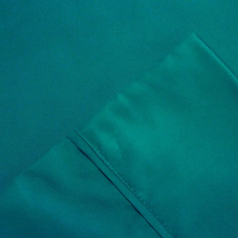 Enjoy a sophisticated bedding with this softness of this king size sheet set which includes 1 flat sheet, 1 fitted sheet with deep pocket and 2 pillowcases. To offer you a comfortable sleep, it is crafted using microfiber with 1800 thread count that makes it an ideal set for sensitive sleepers. Available in a teal blue color, it uplifts the overall character of your bedroom while offering a comfortable space to sleep.