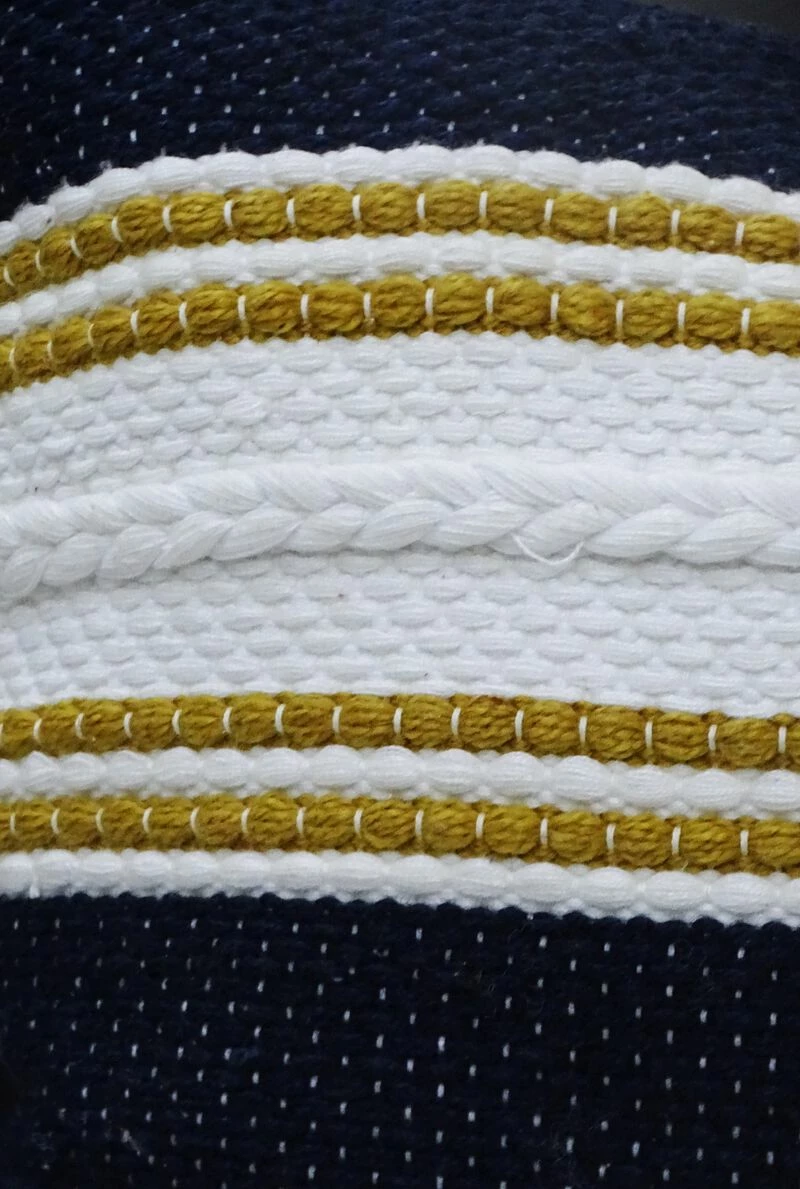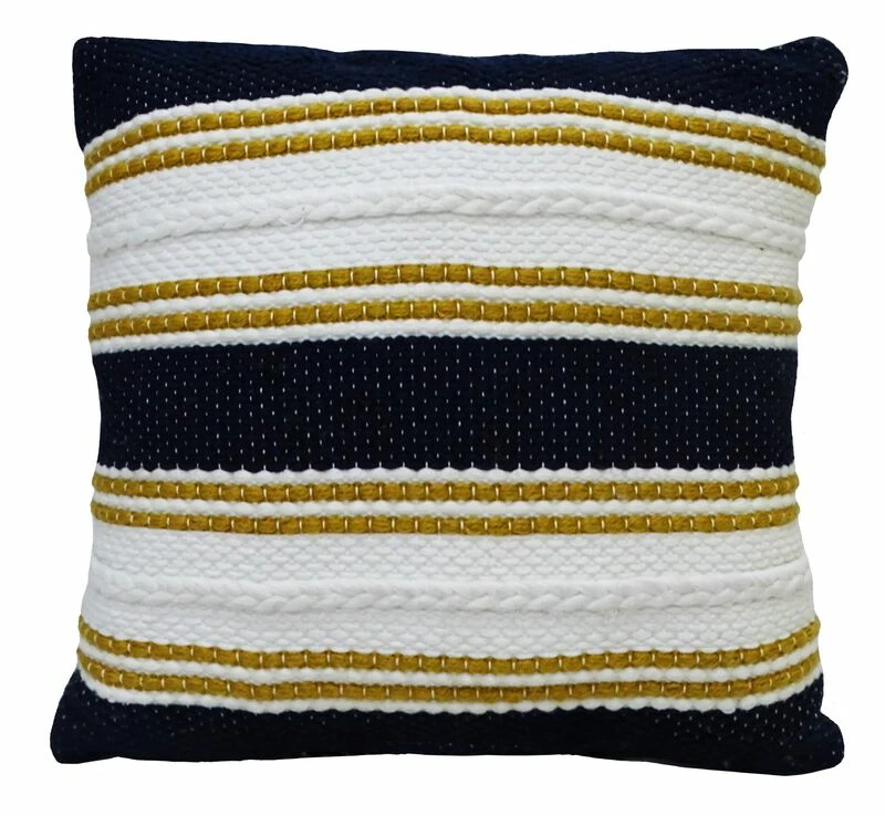 18×18 in handwoven outdoor indoor pillow with briad details. 100% Polyester. Includes: 1 Decorative Pillow with high quality insert. Back of the pillow has solid color with no pattern. Spot Clean only. Designed in USA. Zipper Closure for easy removal of insert. Outdoor and indoor accent pillow