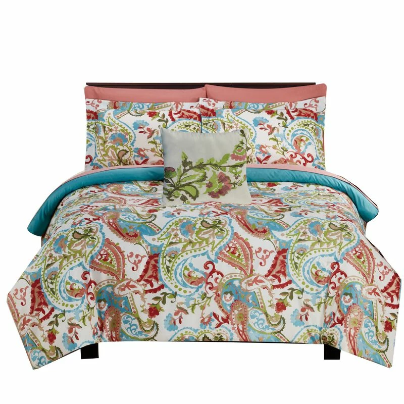 - Set includes 1 comforter, 2 sham , 1 flat sheet, 1 fitted sheet, 2 pillowcases, 1 decorative pillow only.