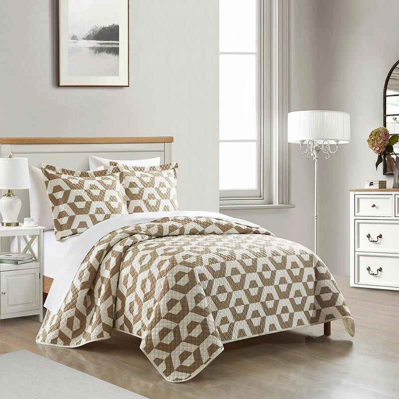 Experience the contemporary design you would expect from a high-rise hotel in the comfort of your own bedroom. The Arthur quilt set from Chic Home features a unique, geometric hexagon pattern print and exudes a sense of understated style that can transport you from the moment you set foot in the room. Two design coordinated pillow shams complete this one of a kind set. Size: Twin XL, Color Scheme: Beige, Piece Count: 5, Set Includes: 1 Piece, Geometric Pattern Print Quilt (66” x 90”), 1 Piece Geometric Pattern Print Pillow Shams (20” x 26″ + 2″), 1 Piece White Microfiber Flat Sheet (66” x 102” + 4″), 1 Piece White Microfiber Fitted Sheet (39” x 80” + 8”), 1 Piece White Microfiber Pillowcases (20” x 30” + 4″), Materials: Luxuriously brushed microfiber fabric, synthetic down alternative filling
