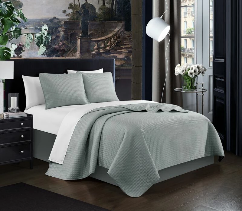 Give your bedroom a fresh, clean look with the minimalist style of the Nika quilt set from Chic Home. This quilt features a contemporary box stitched design on the face. A design coordinated pillow sham completes the look. Every quilt is made with luxuriously soft brushed microfiber fabric for a great night sleep with less tossing and turning.Material: Microfiber Care Instructions: Machine washable. Available size – Queen 90×90″. Color: Grey.