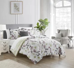 You can almost imagine that your bedroom looks out onto a botanical garden with the Philia comforter set from Chic Home. This reversible comforter set features a watercolor floral theme in a gorgeous palette of subdued purples, pink, blues and greens on the face and a geometric green leaf pattern on the reverse. Complete the lush botanical theme with the included deco pillows and design coordinated floral shams or mix and match with your own pieces for a unique look. Specifications: Size: Queen, Color Scheme: Grey, Piece Count: 7 Set Includes: 1pc Comforter (90” x 92”), 2pc Pillow Shams (20” x 26” + 2”), 1pc Flat Sheet (90” x 102” + 4″), 1pc Fitted Sheet (60” x 80” + 12” Deep Pocket), 2pc Pillowcases (20” x 30” + 4″). Materials: Luxuriously brushed microfiber fabric, hypoallergenic synthetic down alternative filling Fabric and Design: Silky soft brushed microfiber cotton-feel material, Lush watercolor floral theme with a geometric leaf pattern on the reverse Features: Luxuriously soft feel for a great night sleep with less tossing and turning Hypoallergenic alternative down filling is perfect for those allergic to traditional down materials Built to last with premium fabrics and expert stitching.
