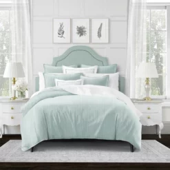 6ix Tailors Fine Linens Crown Stripe Glacier Comforter Set Glacier