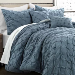 Rhodes Town Textured Print Queen Size Comforter Set With Pleats The Urban Port, Gray-Benzara