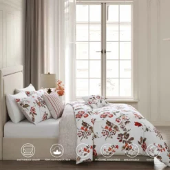 Bebejan Red Floral Vine 100% Cotton 230 Thread Count 5-Piece Reversible Comforter Set. Red