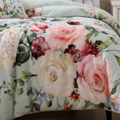 Bebejan Rose On Misty Green 100% Cotton 230 Thread Count 5-Piece Reversible Comforter Set Green