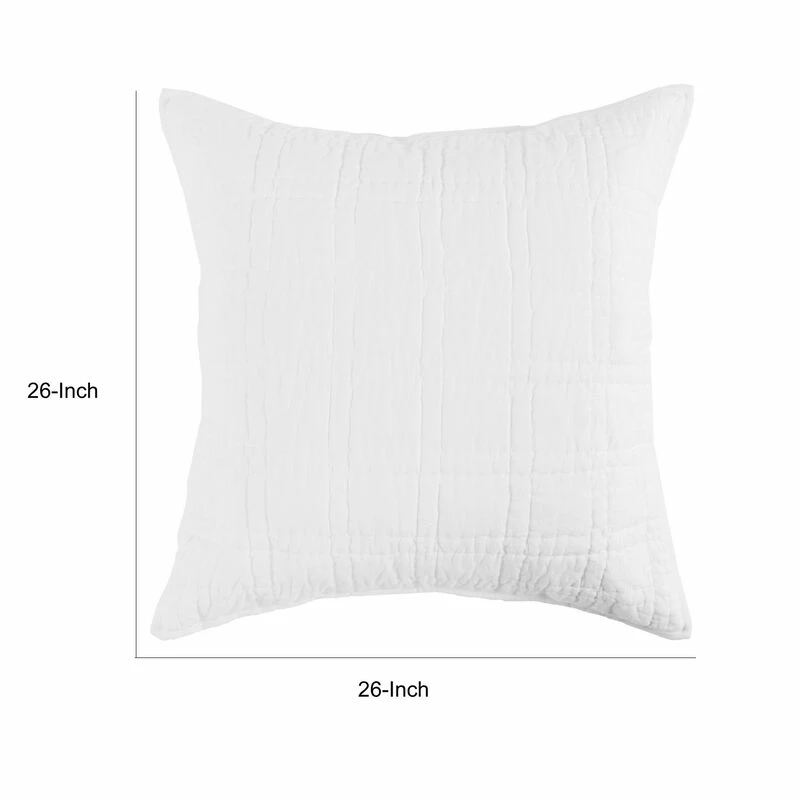 Ellis 26 Inch Square Euro Pillow Sham, Silvadur Tech, Self Binding, White-Benzara