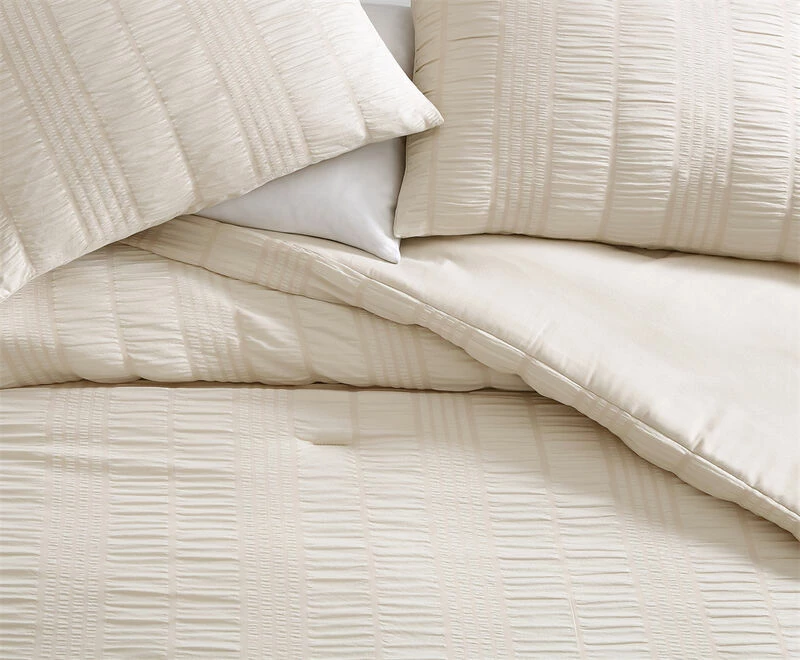 The Nesting Company Elm 3 Piece Seersucker Comforter Set will breathe new life into your space. It’s cloud like feel and soothing color will add a sense of quiet comfort into any bedroom. The Seersucker stripes give depth and dimension to your room as well as an effortlessly stylish look. This set is made from 100% polyester super soft microfiber for a cloud like feel. There are 4 beautiful earth tone color options available for this set, giving it it’s stylish look. This set is machine washable for easy care.
