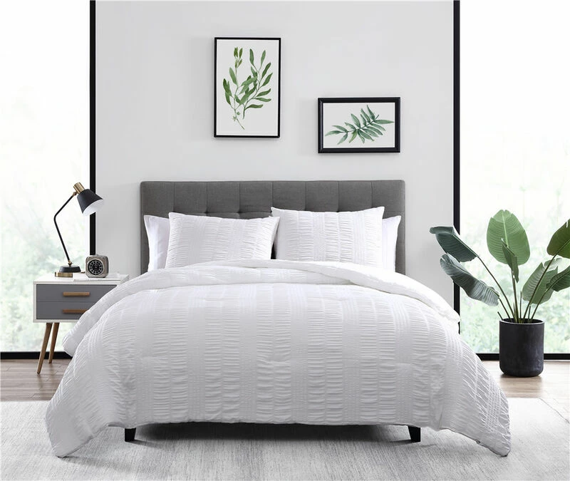The Nesting Company Elm 3 Piece Seersucker Comforter Set will breathe new life into your space. It’s cloud like feel and soothing color will add a sense of quiet comfort into any bedroom. The Seersucker stripes give depth and dimension to your room as well as an effortlessly stylish look. This set is made from 100% polyester super soft microfiber for a cloud like feel. There are 4 beautiful earth tone color options available for this set, giving it it’s stylish look. This set is machine washable for easy care.