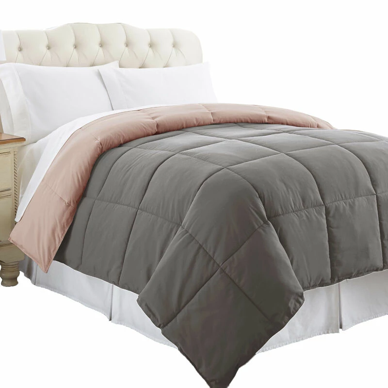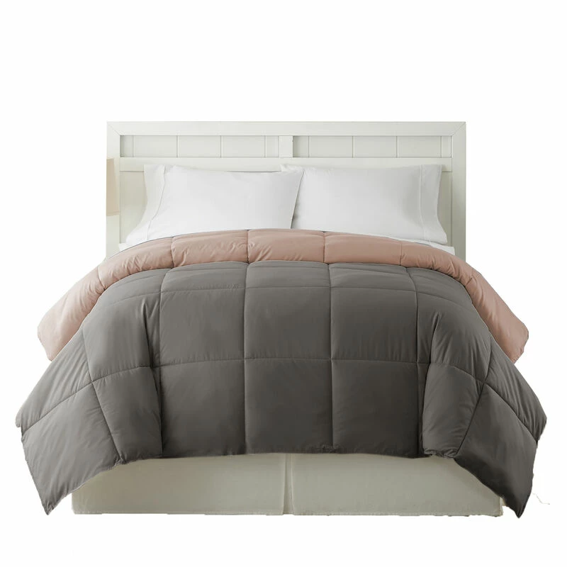 Update your bedroom look in style with the inclusion of this cozy twin size comforter. Made from sumptuous and soft down alternative microfiber for a comfortable experience in elegant gray and pink color. It features box quilted details which bestow an appealing look to the comforter. The machine washable feature saves the hassle of dry cleaning while the reversible attribute makes it a versatile and comfortable companion to your bed.