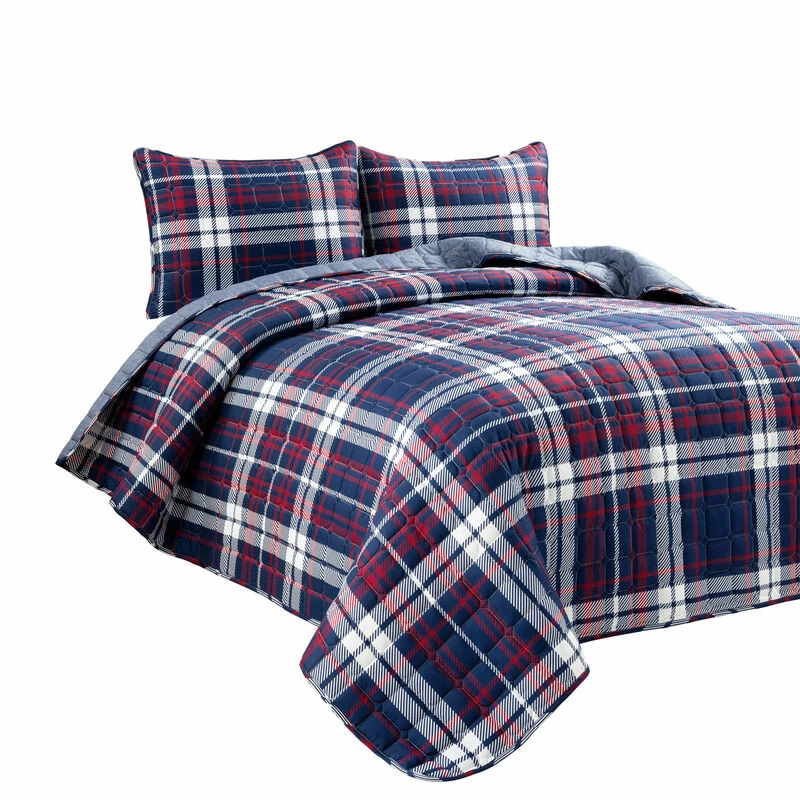 You can never go wrong with classic plaid. This pattern will continue to reappear throughout generations because of its endless pairings and cozy style. The reverse of this quilt features a homey solid finish. Dress up this bedding set to flatter your lodge, farmhouse transitional bedroom or college dorm room. This matching bedding set includes 1 quilt and 2 shams. Please refer to label for full care instructions.