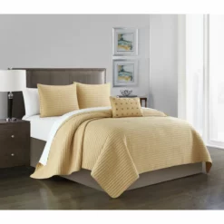Simple elegance. Made from renewable cotton, the Monterrey quilt set combines classic solid color styling with comfort using environmentally friendly materials. Moisture-wicking cotton shell will keep you cool on warm nights and the cotton-rich fill provides the perfect balance creating a coverlet weight that is not too heavy and not too light. Channel quilting features cross-stitch embellishment, adding surface texture and visual appeal. Used as a layering piece, or on top of your bed, the Monterrey quilt set looks great in any room. The Twin set includes one 68×88-inch quilt plus one 20×26-inch pillow sham. All dimensions +/- 2 inches. Machine quilted with fabric-bound edges for durability. Soft, prewashed 100% Cotton face and back; cotton rich 60% cotton, 40% polyester fill. Easy Care is machine washable.