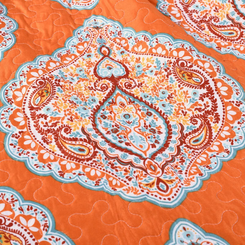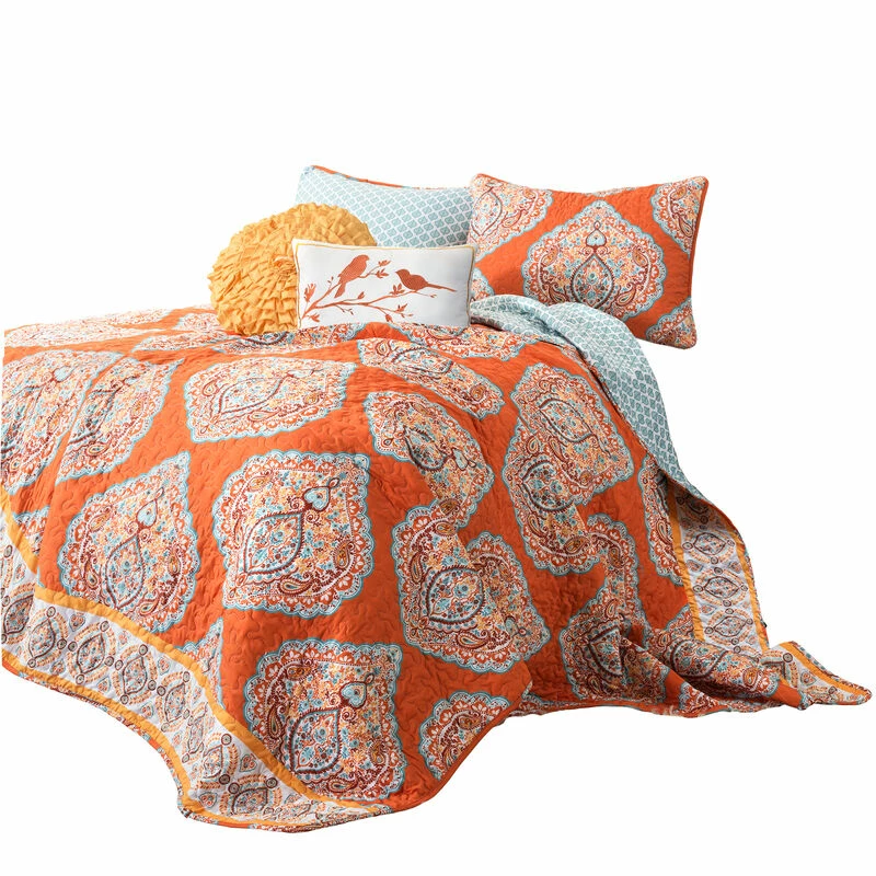 Classic yet modern, this 5 piece micro-fiber quilt set will brighten up any space. The Damask pattern adds the perfect touch without throwing off the balance of the room. This reversible quilt features a complementary pattern along with flowing color