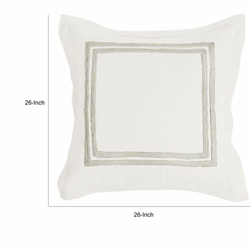 Lenz 26 Inch Cotton Euro Pillow Sham with Hand Stitched Embroidery, Ivory-Benzara