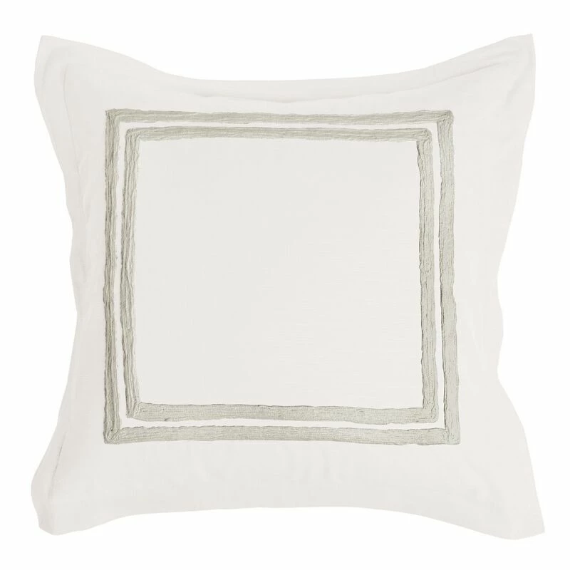 Stylize your master or guest room bedding setup with our classic Lenz euro pillow sham. It is generously made with ultra soft ivory cotton slub for a soft touch and feel. Meanwhile, its hand stitched embossed double square embroidery and subtle flange finish give any bedroom decor a glamorous, classical look. Check out our Lenz collection for matching items just like this.