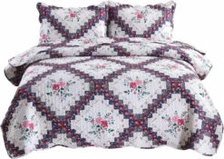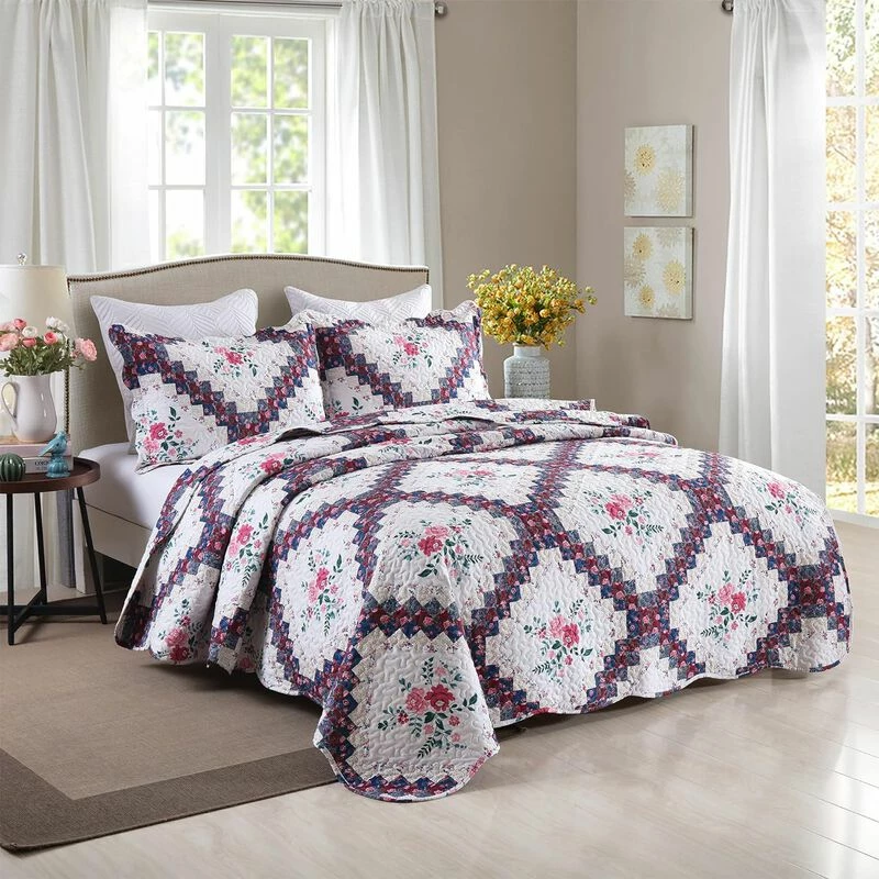 ACTIVE PRINTING: The 3 Piece Quilted Quilts Bedspread adopts pure natural mineral or vegetable dyes, featuring high color fastness and fine-fading pattern, non-fading.