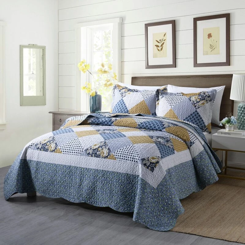 ACTIVE PRINTING: The 3 Piece Quilted Quilts Bedspread adopts pure natural mineral or vegetable dyes, featuring high color fastness and fine-fading pattern, non-fading.