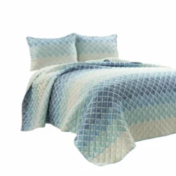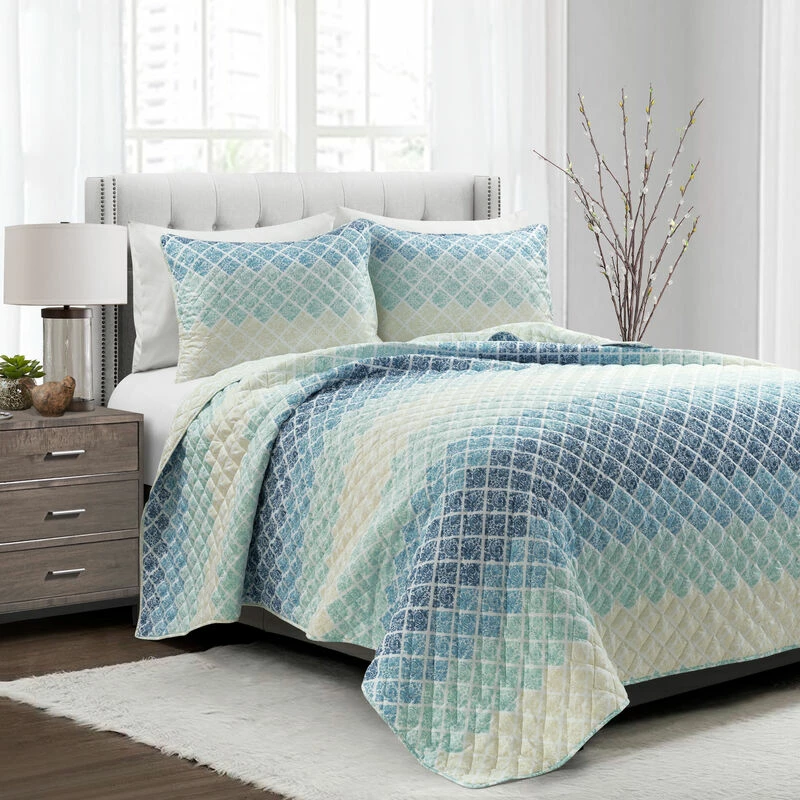 Intricate medallion motifs are showcased in the diamond quilted detailing of this bedding. The ombre pattern introduces multiple complementary colors for a modern look. Decorate your bedroom with this unique STANDARD 100 by OEKO-TEX® certified quilt set.