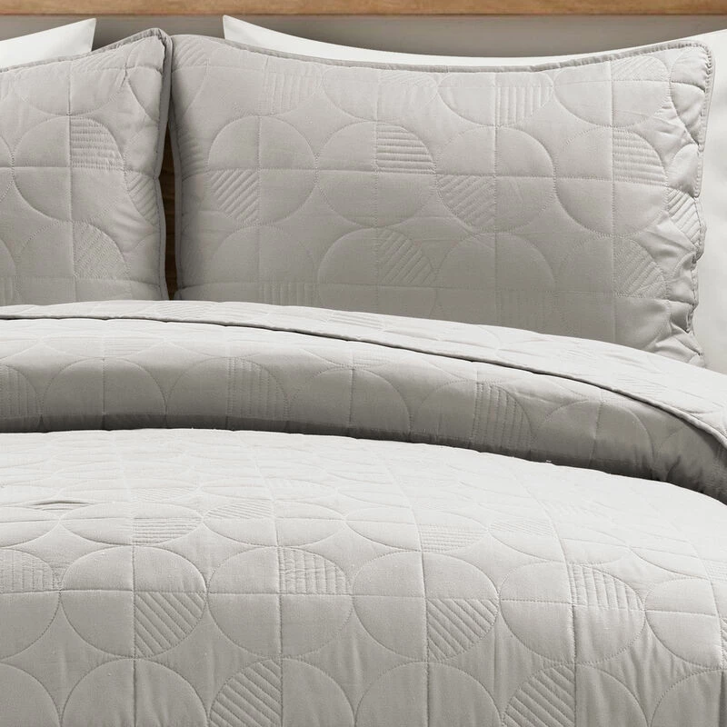 Simple and sleek for a mid-century style, this quilt set features a unique quilting pattern on a soft cotton surface. Reversible and oversized, this STANDARD 100 by OEKO-TEX® certified quilt set is a bedding basic refreshed with a sophisticated look.