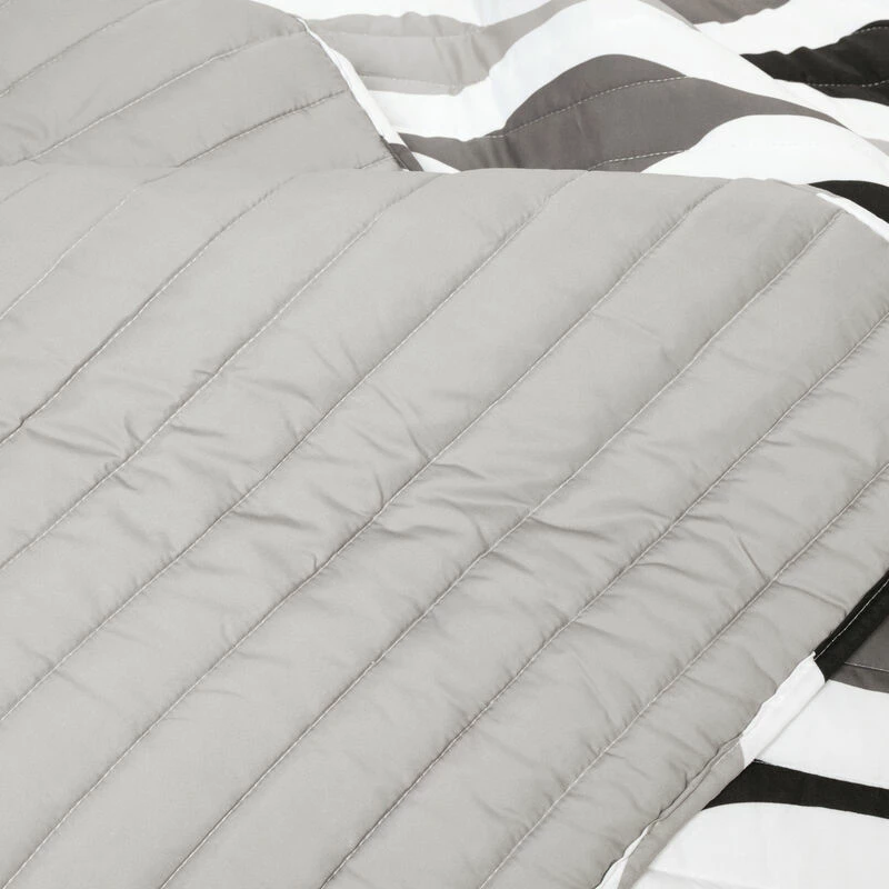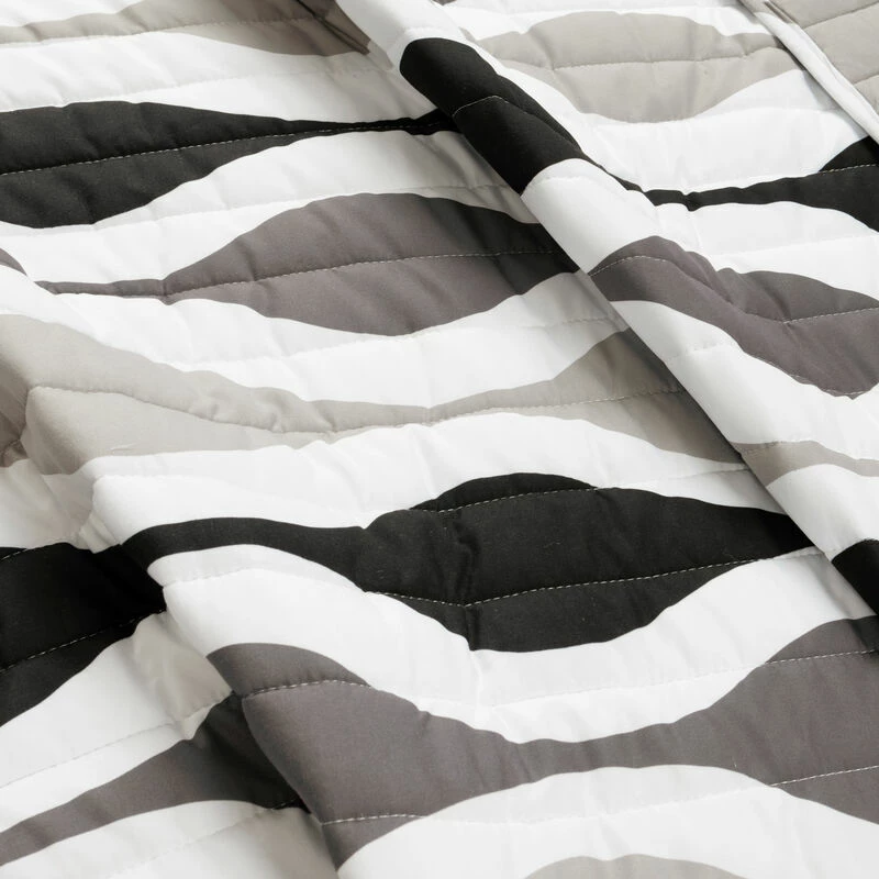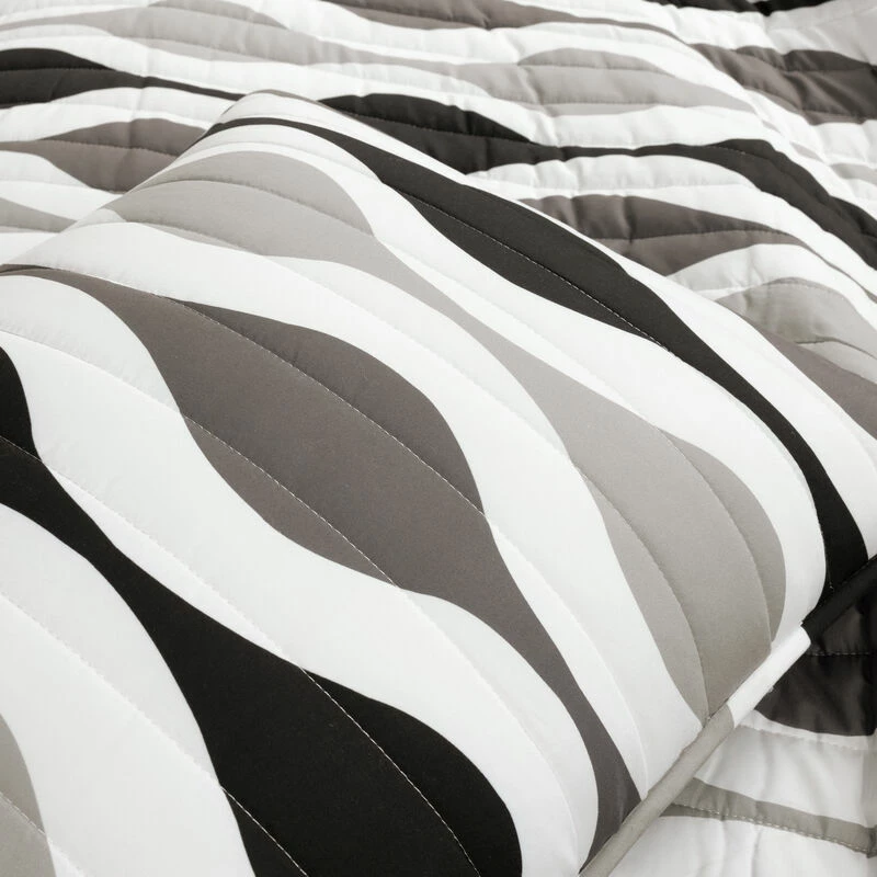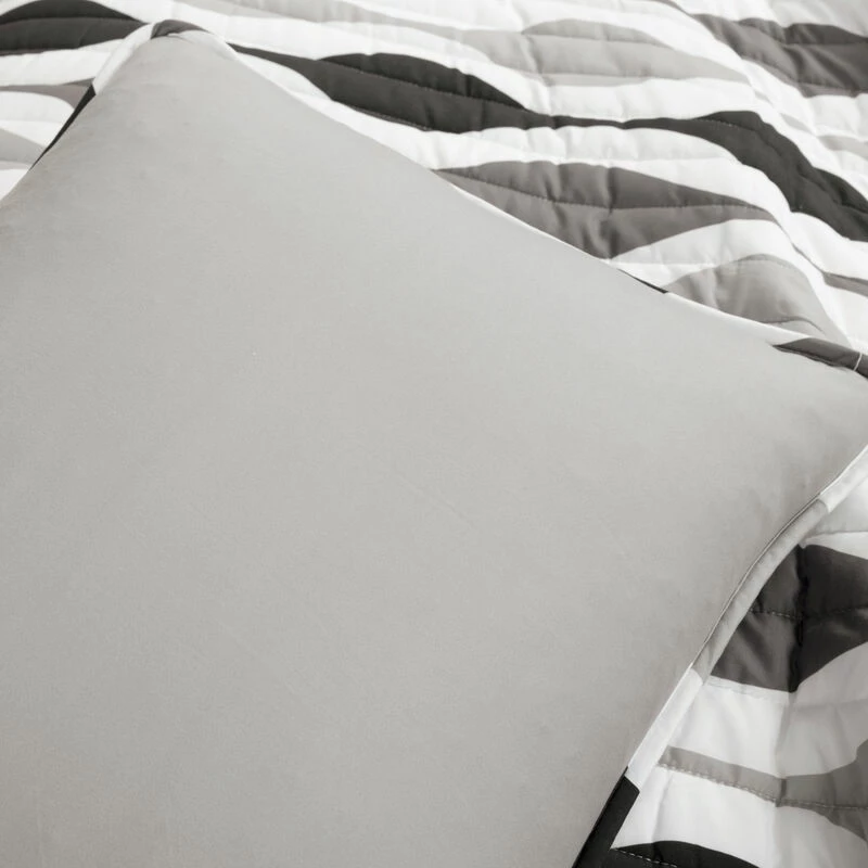 Let your bold personality shine through your decor with this quilt set. This eclectic design combines three colors in a wavy and retro inspired pattern. Center your bedroom decor around this unique quilt set.