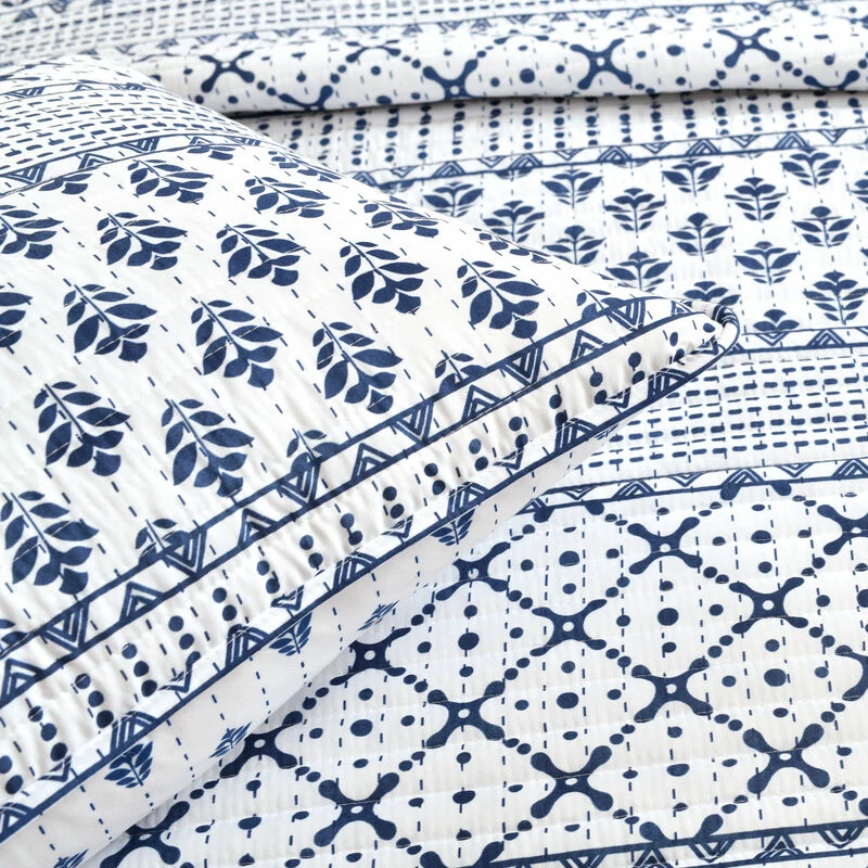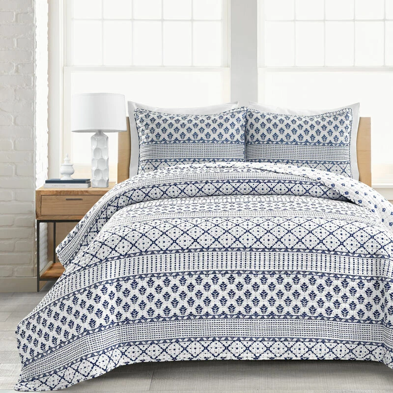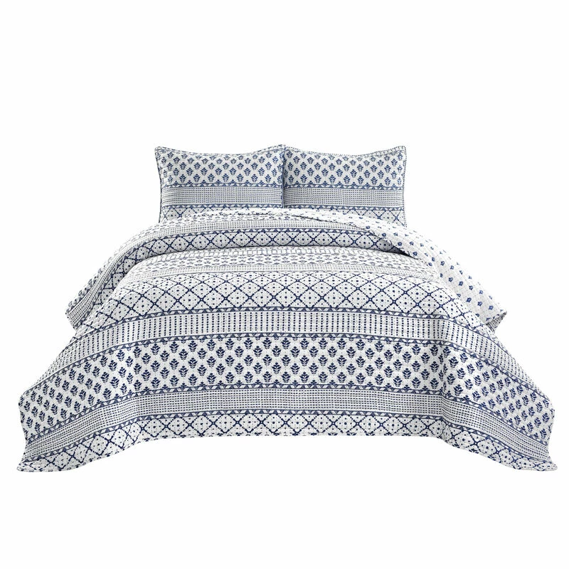 Add Scandinavian hygge style to your bedroom decor with this reversible quilt set featuring stripes of various geometric patterns. The unique and stylish patterns printed on soft microfiber create a cozy vibe for your master or guest bedroom makeover.