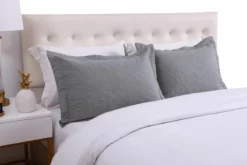 MarCielo 2 Piece 100% Cotton Quilted Pillow Shams Embroidered Farmhouse Light Gray