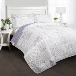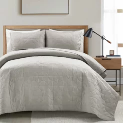 Mid Century Circle Reversible Oversized Cotton Quilt 3Pc Set Gray