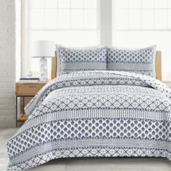 Medallion Ombre Reversible Oversized Quilt 3Pc Set Blue/Navy