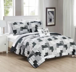 Chic Home Hayden Striped Box Stitched Design Bed In A Bag Quilt Set – King 104×90″, Grey Grey