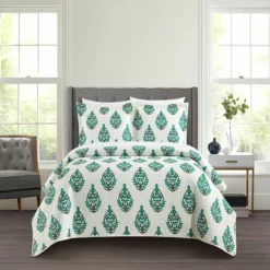 Chic Home Breana Quilt Set Floral Medallion Print Design Bed In A Bag Bedding Green Green