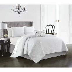 Chic Home Hayden Striped Box Stitched Design Bed In A Bag Quilt Set – King 104×90″, White White