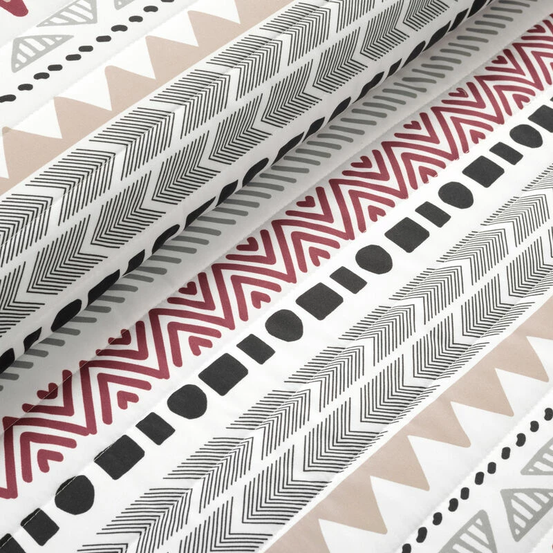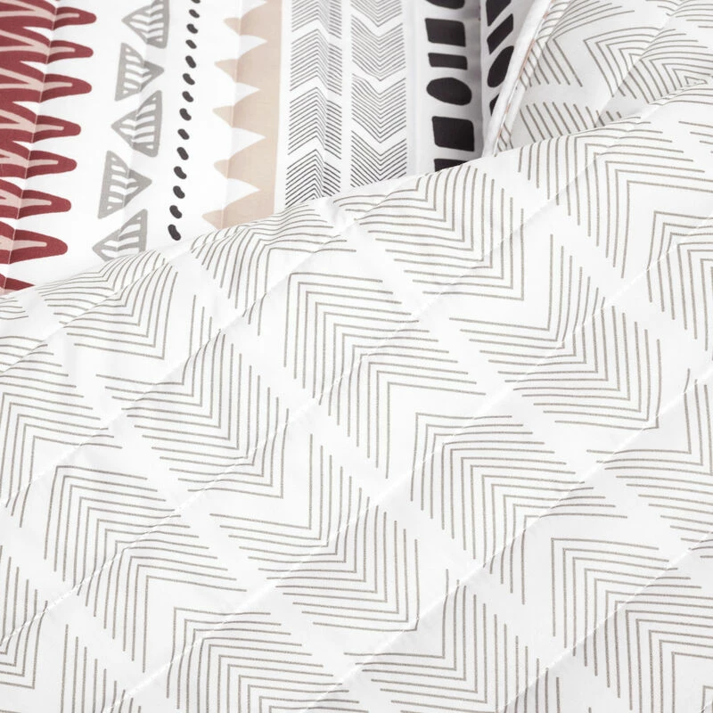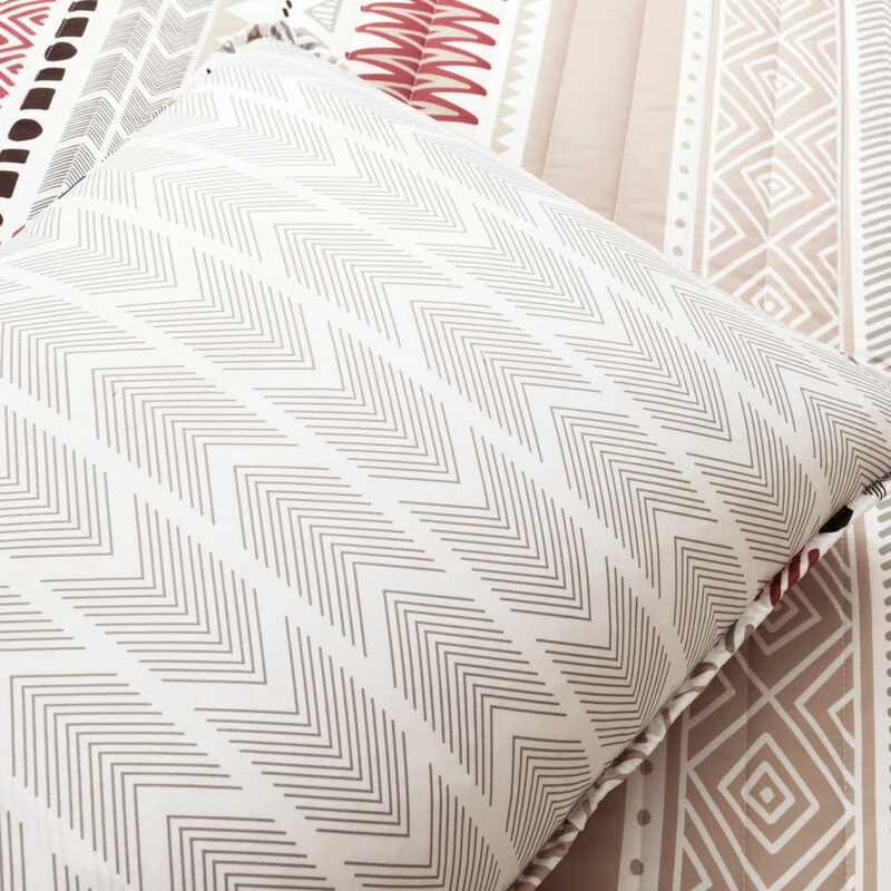 Bring warm and rustic southwest style to your bedroom with this STANDARD 100 by OEKO-TEX® certified quilt set. Each piece is painted with Aztec inspired geometric stripes. The reverse of this 3-piece set features a pinstriped arrow design.