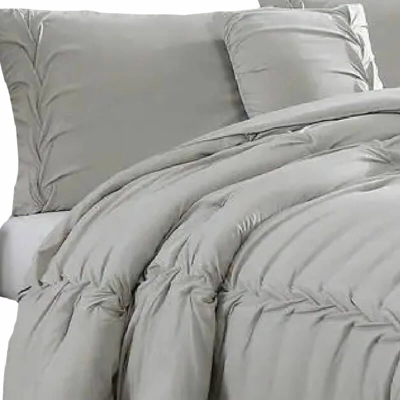 Tyler 8 Piece Puckered Queen Size Comforter Set, The Urban Port, Light Gray-Benzara
