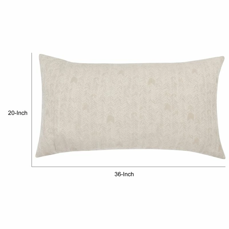 Zima 20 X 36 Lumbar King Pillow Sham with Woven Herringbone Pattern, Beige-Benzara