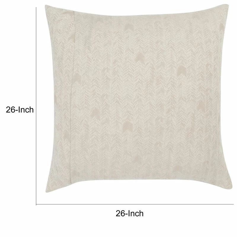 Zima 26 Inch Cotton Euro Pillow Sham, Distressed Herringbone Design, Beige-Benzara